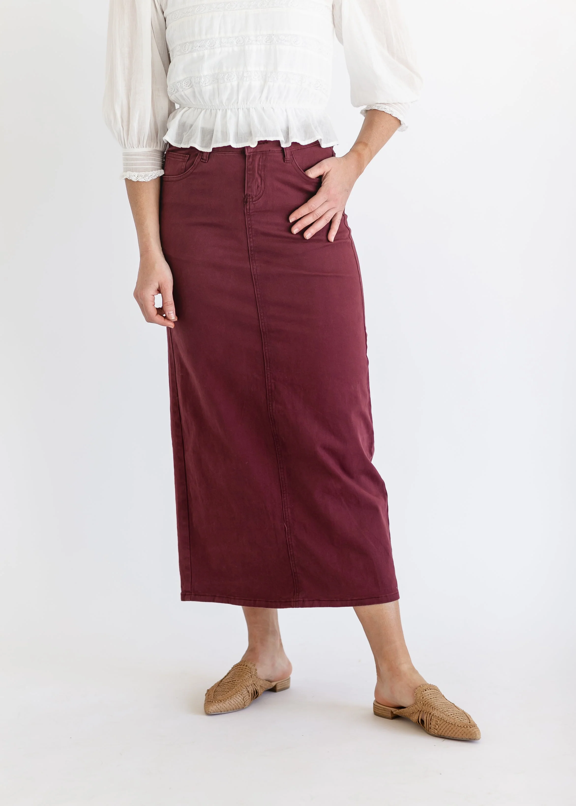 Stella Burgundy Denim Maxi Skirt - FINAL SALE